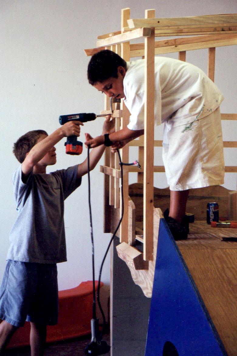 These snapshots capture work in progress as summer camp participants design and build a play structure to donate to a non-profit infant and toddler care center in Santa Monica, California. Once installed, the play structure is used and enjoyed!
